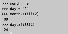 print(month.zfill(2)) #"09"